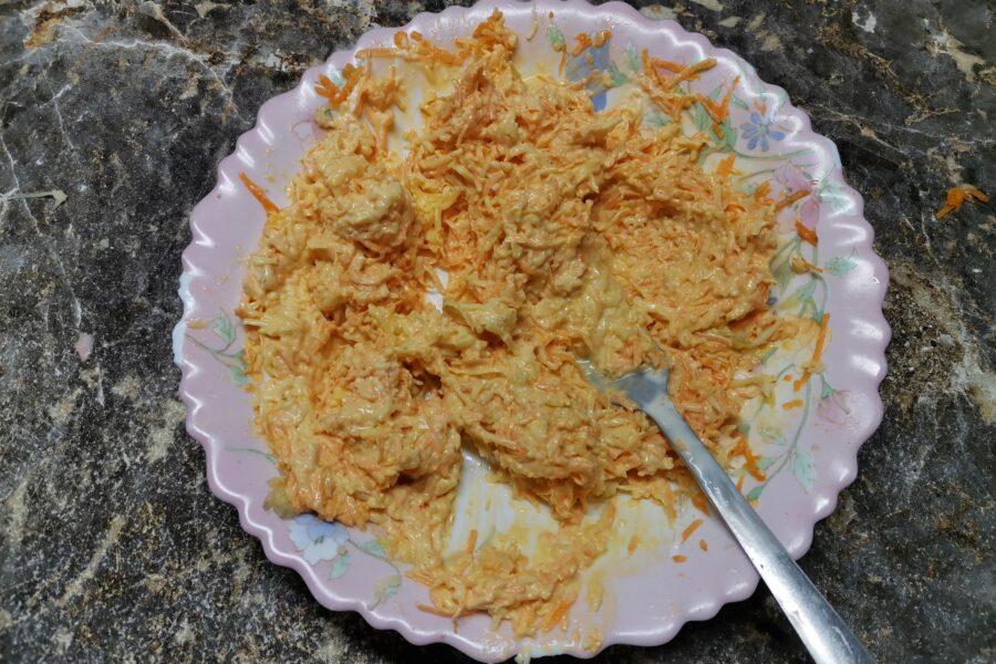 - La fel si morcovii. Se amesteca cascavalul si morcovii, se adauga smantana sau maioneza, se preseaza usturoiul si se amesteca totul cu grija. In cazul in care aperitivul este destinat intregii familii, inclusiv copiilor, este suficient sa adaugati un catel de usturoi. Daca pregatesc doar pentru adulti, folosesc 3-4 catei pentru aceasta cantitate de legume. Cu cat este mai picant, cu atat este mai interesant.