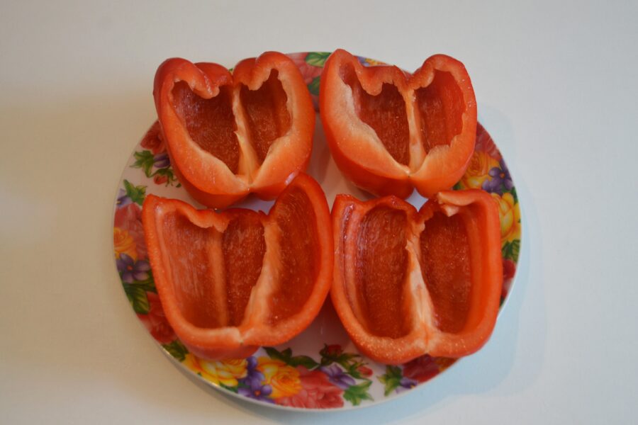 - Se spala ardeii grasi si se taie in jumatate, apoi se curata de seminte.