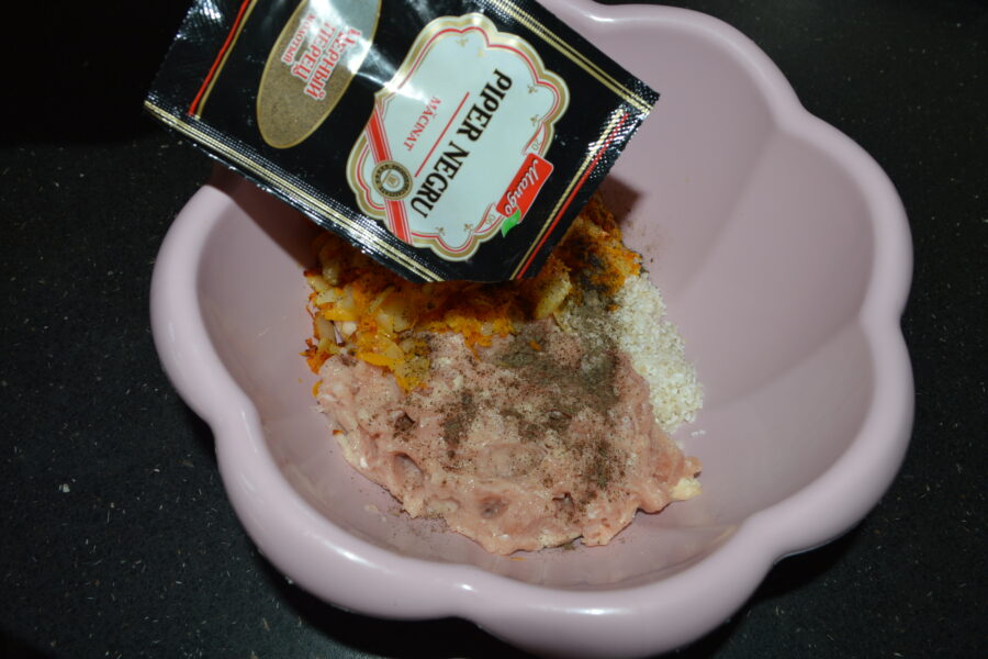 - Eu am folosit carne tocata de pui, dar puteti folosi si de porc.