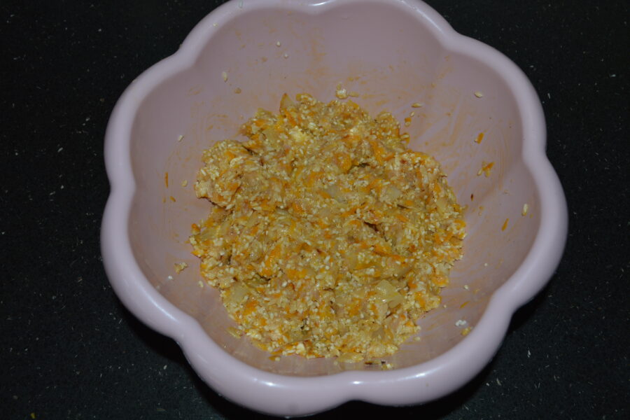 - Adaugati amestecul de ceapa si morcovi prajiti.