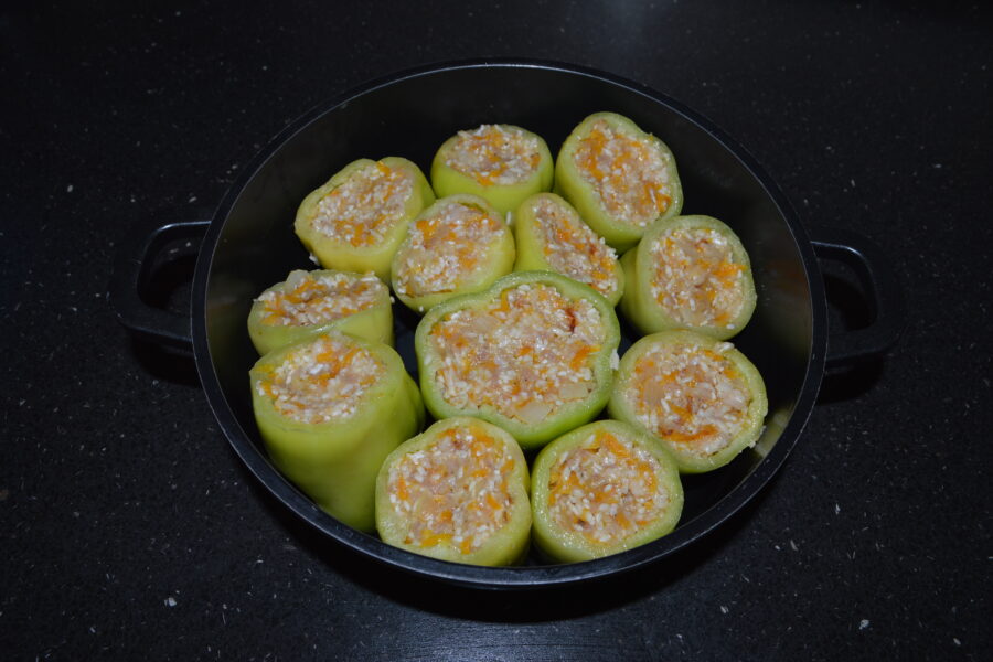 - Nu umple prea tare – Lasa putin spatiu in interior pentru ca orezul sa se umfle fara sa sparga ardeiul.