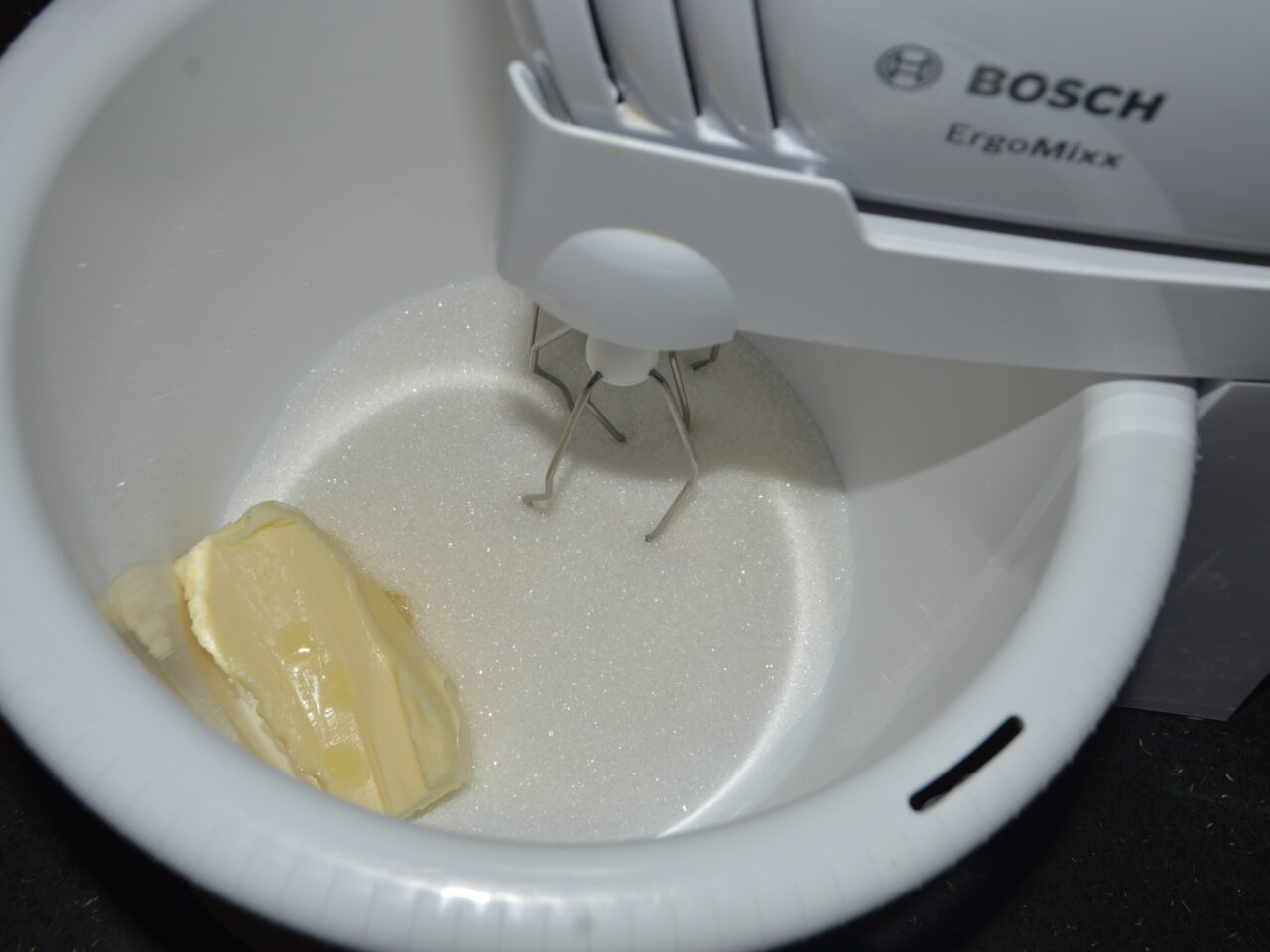 - Intr-un castron puneti zaharul si untul de temperatura camerei.