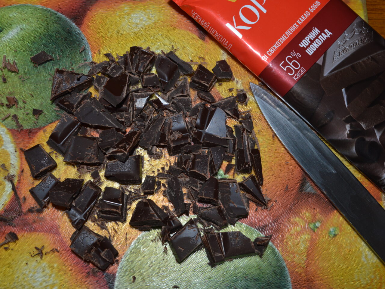 - Taiati marunt 80% dintr-o ciocolata neagra intreaga.