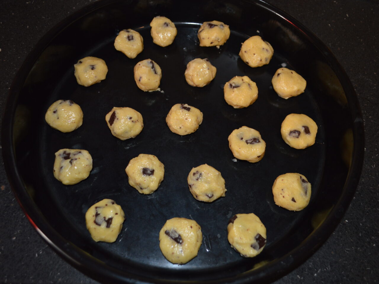- Preincalziti cuptorul la 180 C. Puneti biscuitii la o distanta unul de celalalt, pentru ca in timpul coacerii vor creste in volum. Coaceti timp de 10-12 minute.