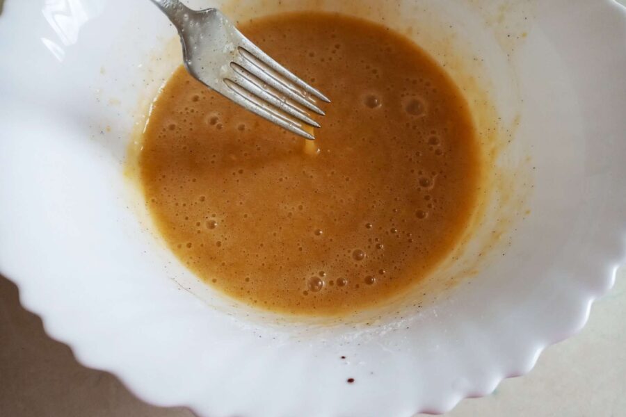 - Se toarnă ulei vegetal inodor și se amestecă totul împreună cu un țel.