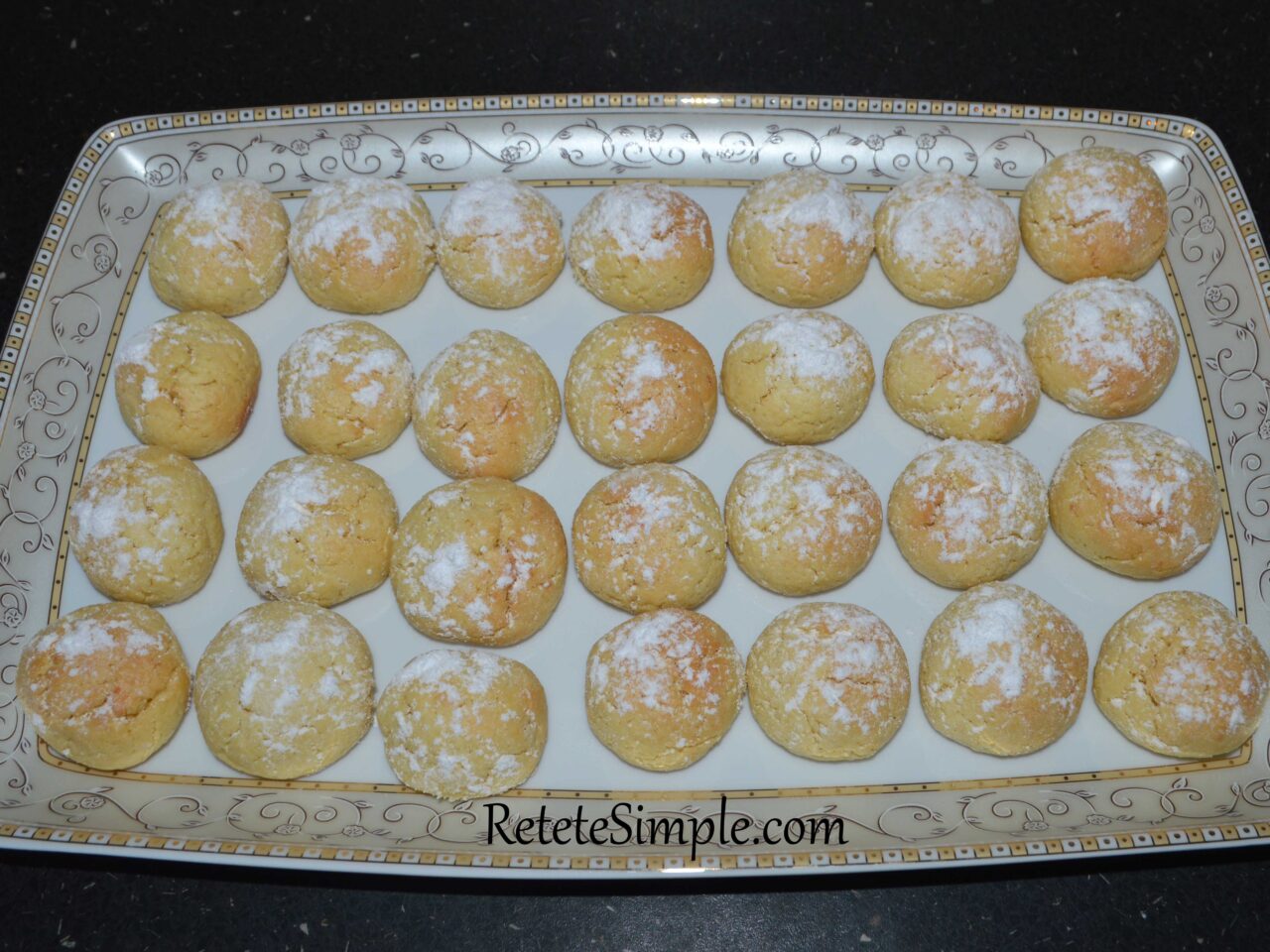 - Biscuitii sunt gata, dupa ce ii scoateti de la cuptor ii lasati cateva minute in tava, apoi ii transferati pe o farfurie, si la dorinta ii presurati cu zahar pudra.