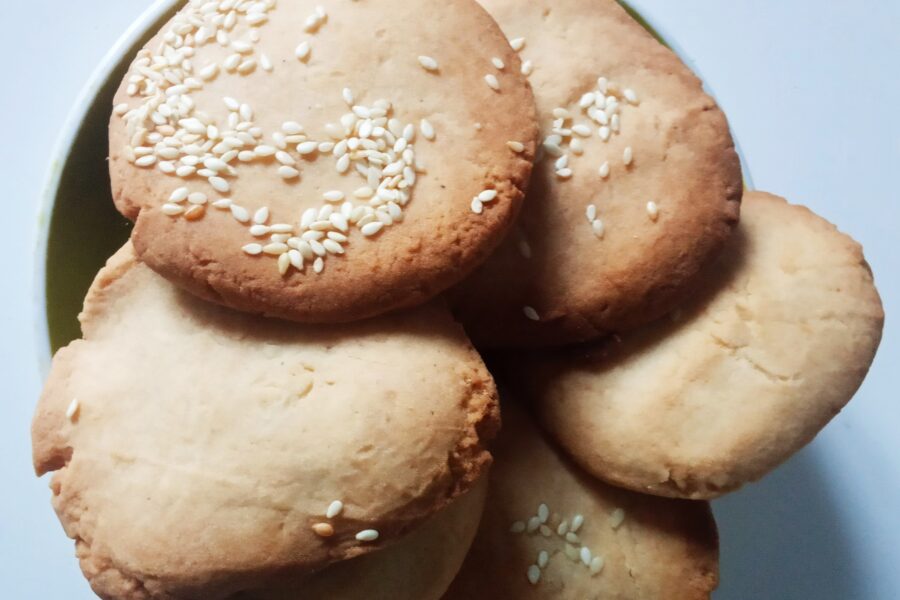 - Se toarnă făina, cernută în prealabil, bineînțeles. Acum începeți să frământați aluatul. Nu trebuie să așteptați mult și să-l puneți la frigider, să începem imediat să facem forma. Aici imaginația nu este limitată. Eu am improvizat cercuri. Presărați partea de sus cu semințe de susan sau alte decorațiuni de cofetărie, dacă nu există nimic, puteți presăra doar cu zahăr.