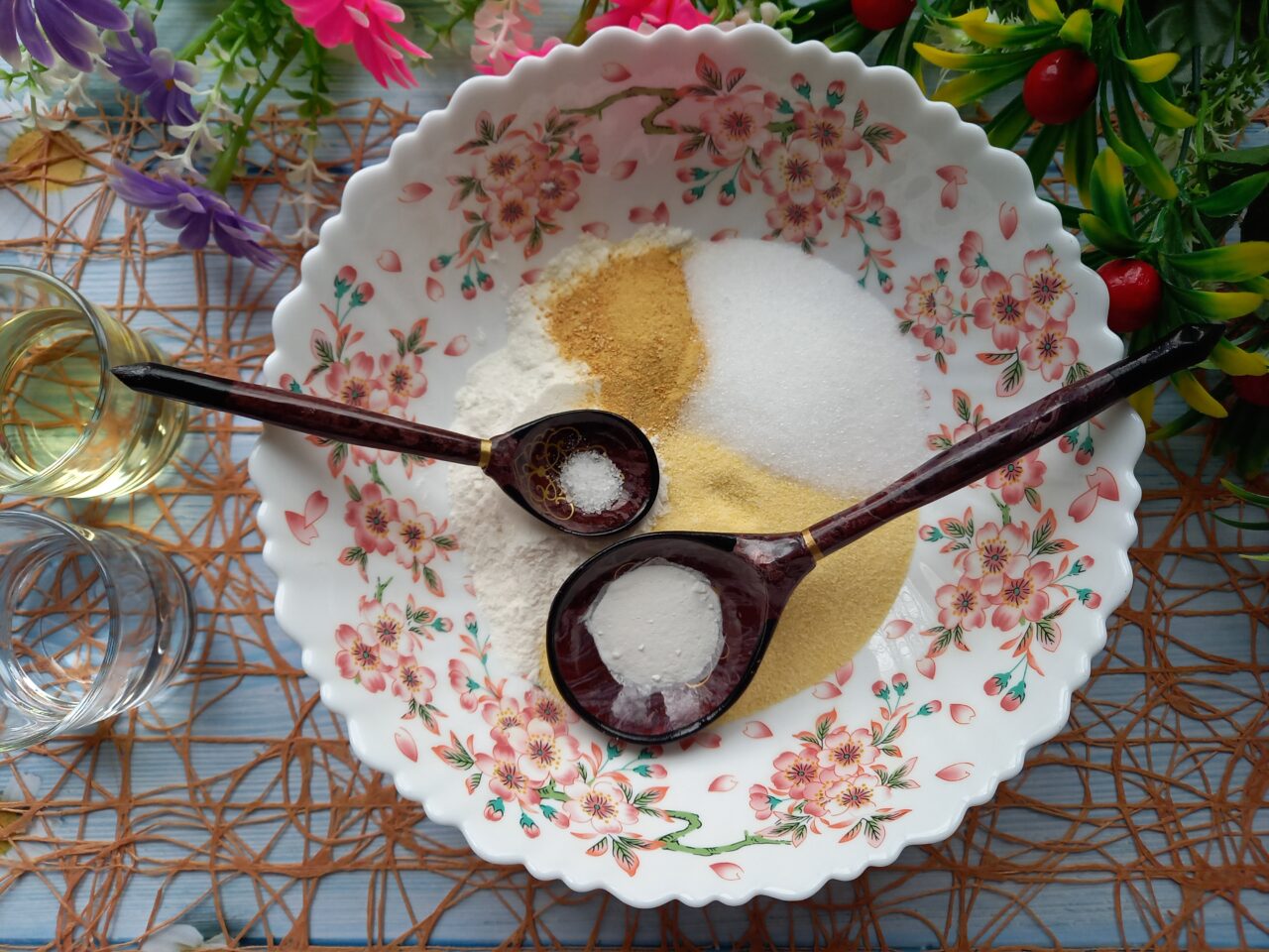 - Mai întâi se amestecă toate ingredientele uscate (conform listei de mai sus).