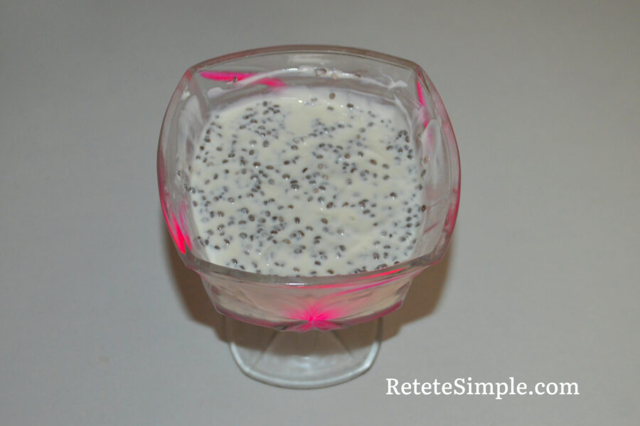 - Dati la frigider paharul acoperit cu folie alimentara. Cel mai bine este sa lasati la frigider pe noapte, doar cateva ore nu sunt de ajuns ca semintele chia sa se umfle, iar asa crude nu este sanatos de a le consuma.