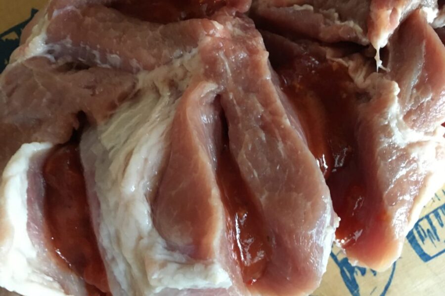 - Tăiați carnea spălată în mai multe locuri. Principalul lucru este să nu se facă tăieturi transversale.