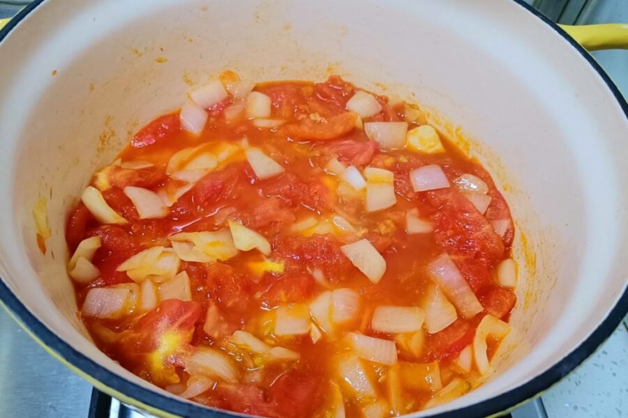 - Pune uleiul de măsline și ceapa tocată într-o cratiță cu fundul gros. Se prăjește până se parfumează.