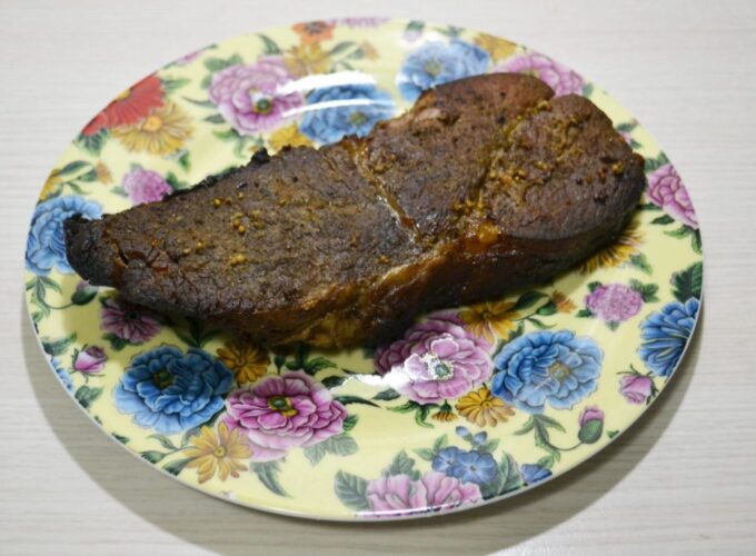 Carnea de vită marinată în sos de muștar se dovedește incredibil de gustoasă, aromată și moale. Cele două condiții pentru ca carnea să iasă astfel sunt carnea de vită tânără și câteva ore de marinare. Rețeta nu este complicată, coacerea în mânecă ușurează prepararea. Această carne poate fi servită la o masă de sărbători ca aperitiv.