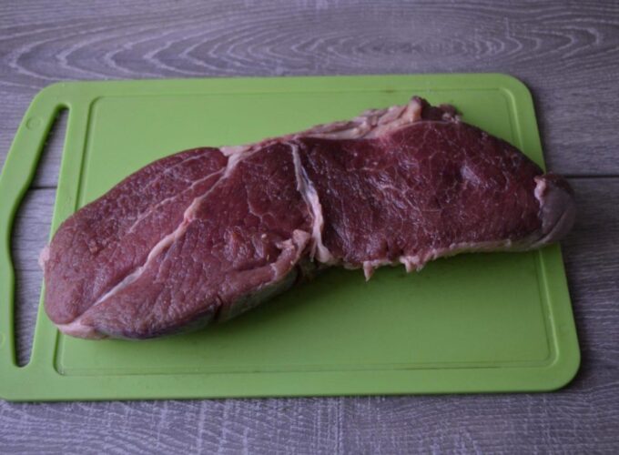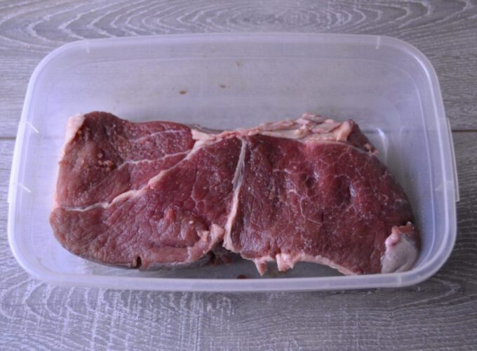 - Clătiți o bucată de pulpă de vită cu apă și uscați puțin cu un prosop de hârtie.