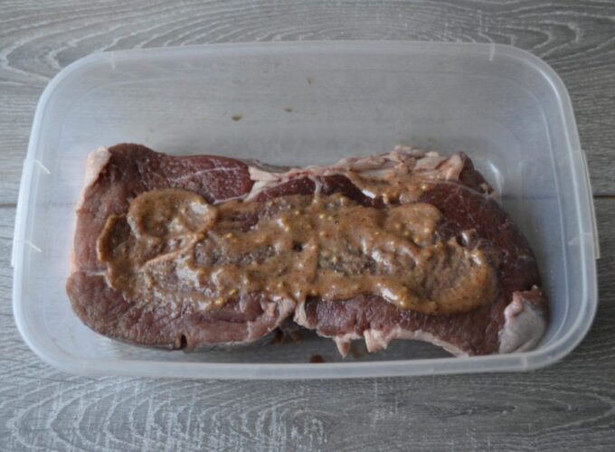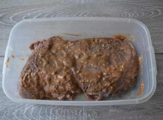 - Întoarceți bucata și acoperiți toată carnea pe toate părțile cu marinada rămasă.