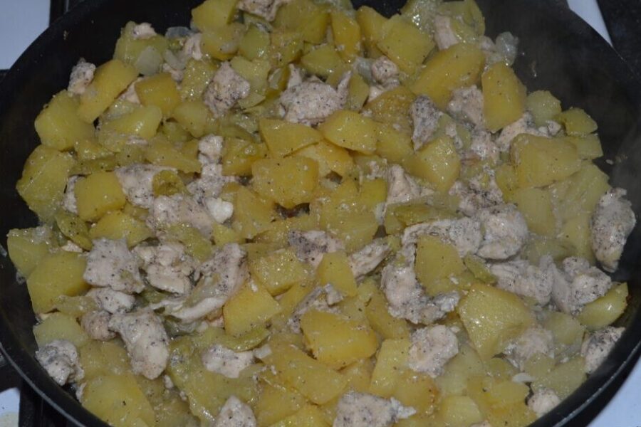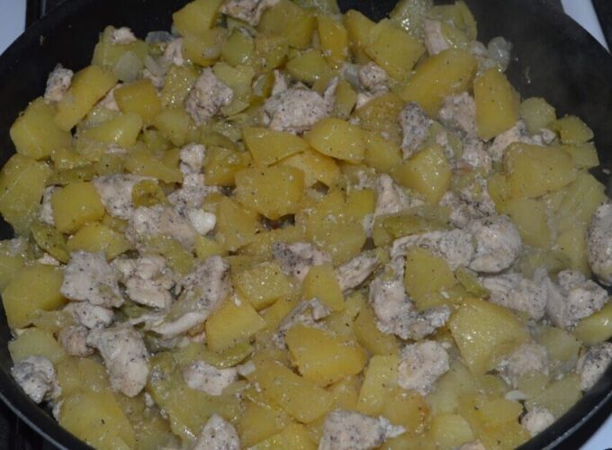 Reteta gustoasa de cartofi inabusiti cu piept de pui si ardei dulce, preparat la tigaie. Savurati din aceasta mancare absolut delicioasa, si usor de facut.