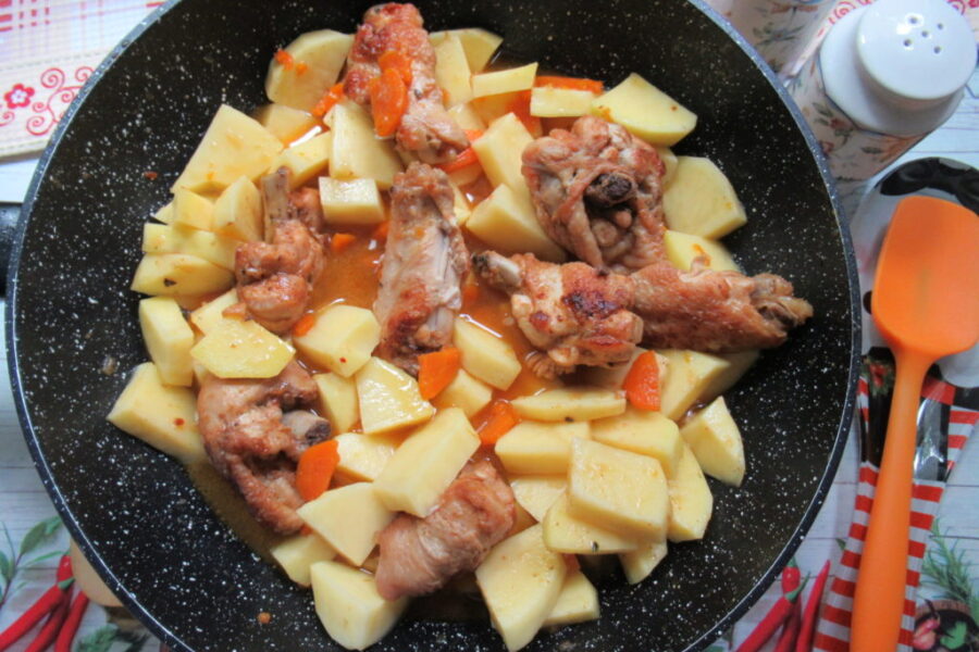 - Așadar, puțin timp și efort, și cartofi înăbușiți cu pui împodobesc masa noastră.