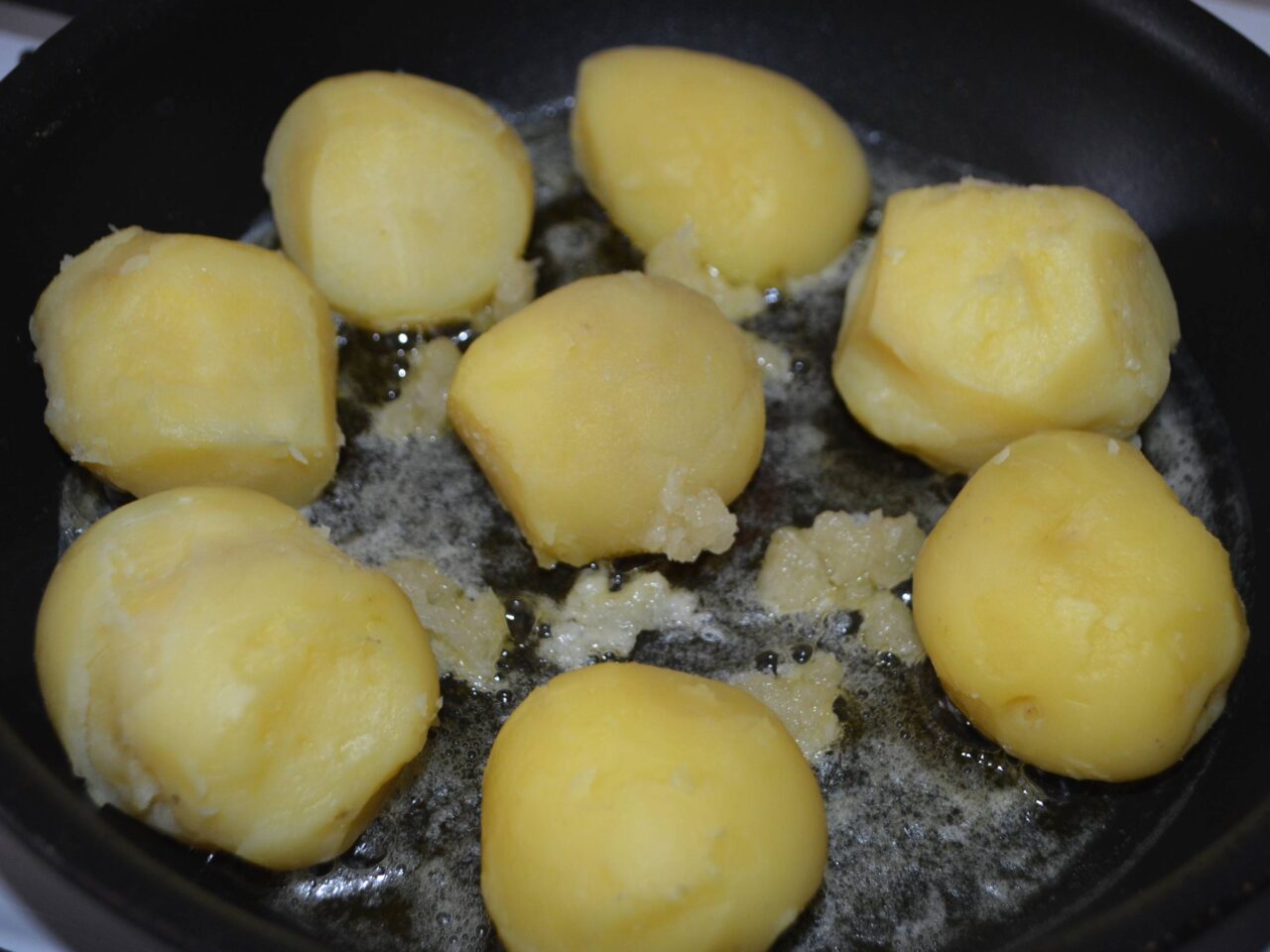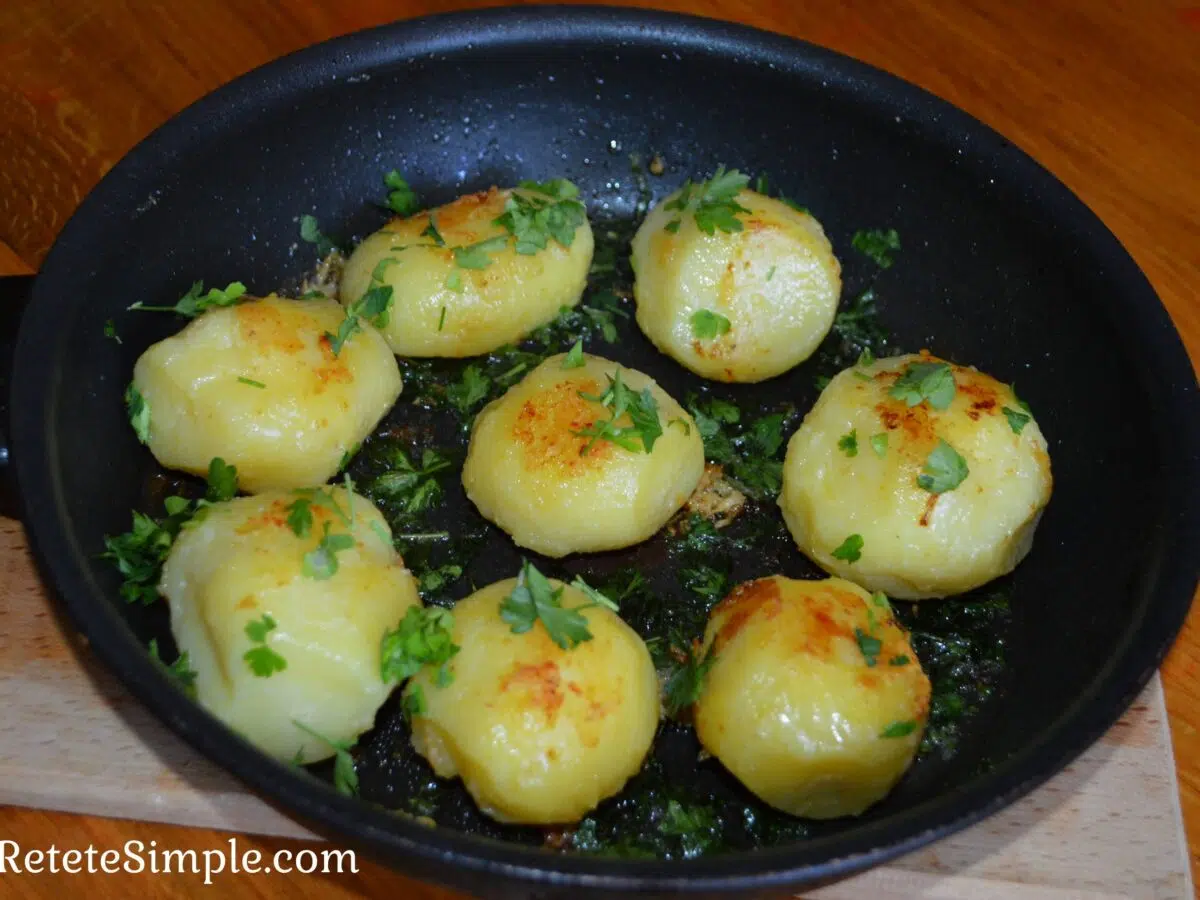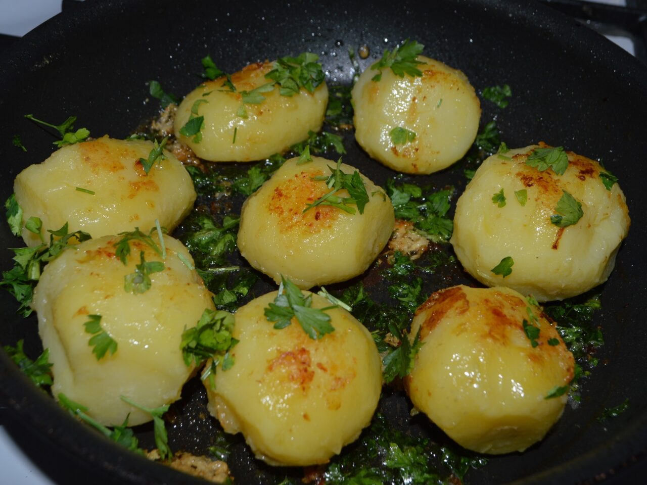 Aceasta reteta de cartofi rumeniti la tigaie este perfecta ca garnitura sau fel principal. Crocanti la exterior, moi in interior, cu o aroma intensa de usturoi si unt, si cu verdeata proaspata. O garnitura rapida si gustoasa care se face foarte usor dintr-un minimum de ingrediente.