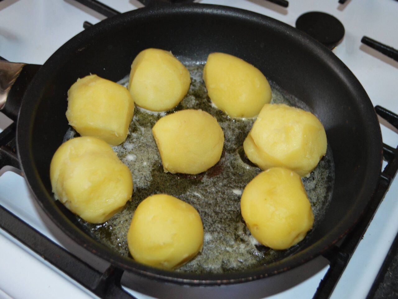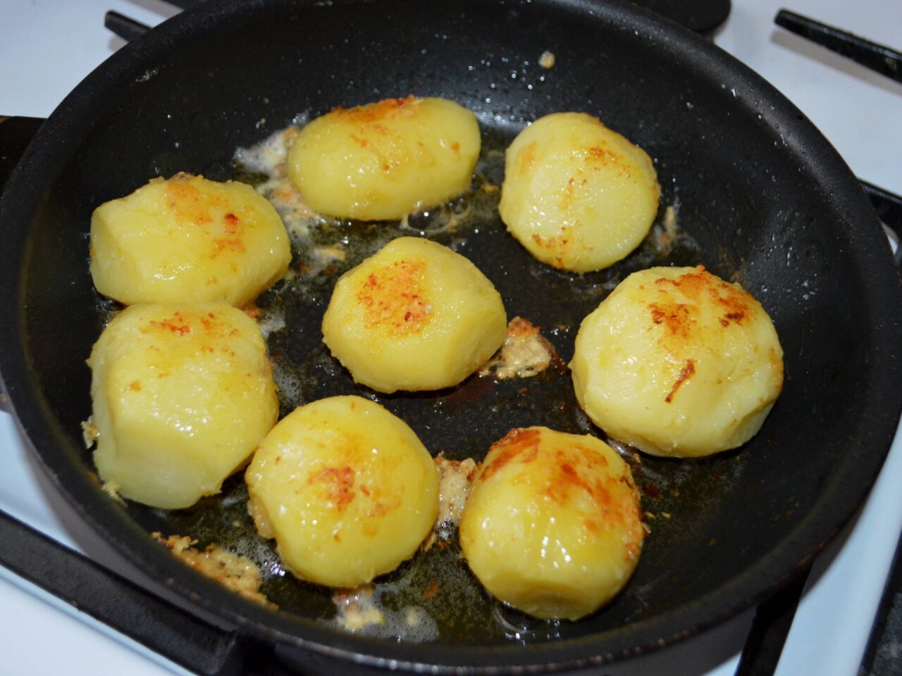 - Lasati cartofii la foc mic pe cateva minute pe o parte, si cateva minute pe cealalta parte pana se vor rumeni.