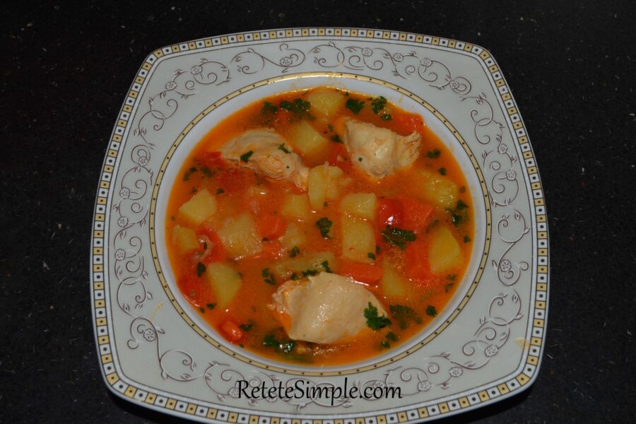 - Dupa ce legumele s-au calit bine adaugati pieptul de pui in ceaun.