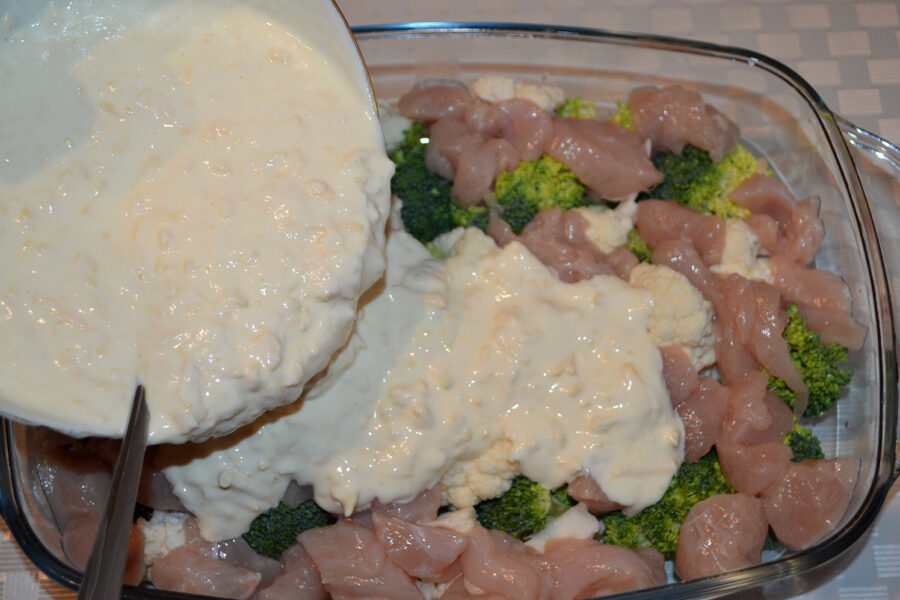 Doriti o mancare sanatoasa, preparata usor si intr-un timp foarte scurt? atunci va recomand sa incercati aceasta caserola de broccoli, conopida si piept de pui la cuptor, cu un amestec de smantana si cascaval care da un gust nemaipomenit legumelor si carnii.