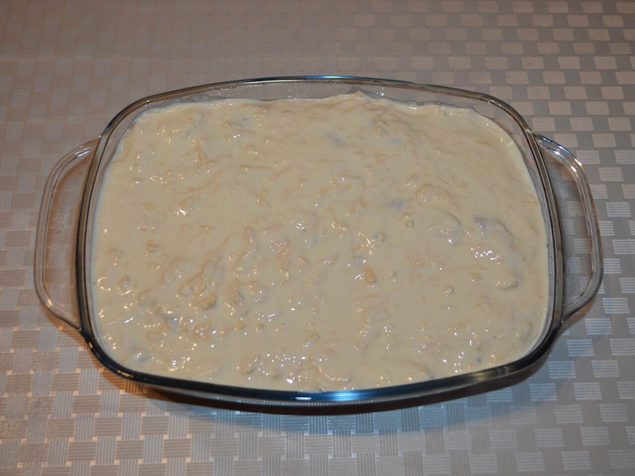- Nivelati uniform amestecul in tava.