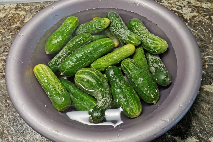 - Clatiti bine castravetii, si indepartati tulpinile.