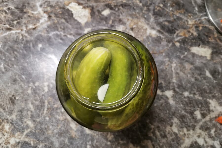 - Turnati apa pana se acopera castravetii si lasati-i la inmuiat timp de 1-2 ore, pentru a absorba lichidul si sa devina tari.