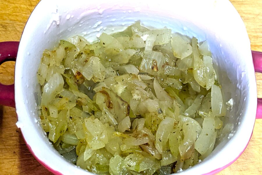 - Prajiti ceapa pana se inmoaie. Nu prajiti prea mult ceapa.