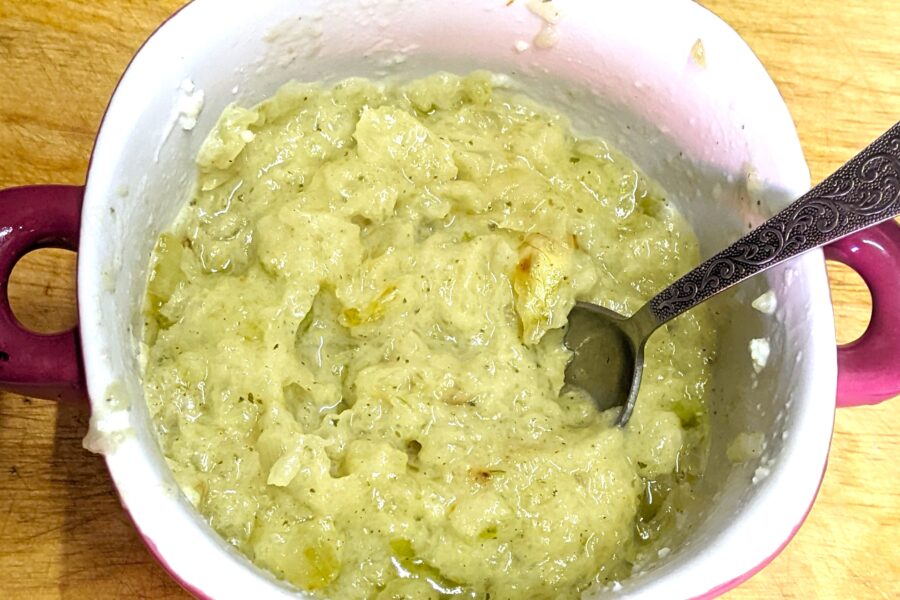- Daca ati tocat ceapa foarte marunt, adaugati-o la carnea tocata. Eu prefer sa bat ceapa prajita cu un blender de imersie.