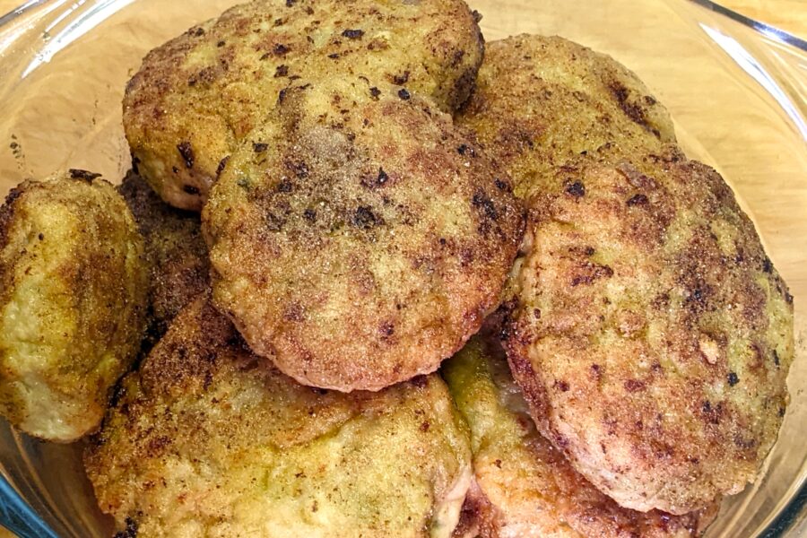 - Prajiti la foc mediu. Eu am facut cotlete mari. In tigaie au incaput doar patru bucati. Inainte de a servi, chiftelele trebuie sa mai fie inabusite putin sau trimise la microunde timp de 3 minute. Suculente, cu aroma de ciuperci uscate, chiftelele sunt foarte gustoase.