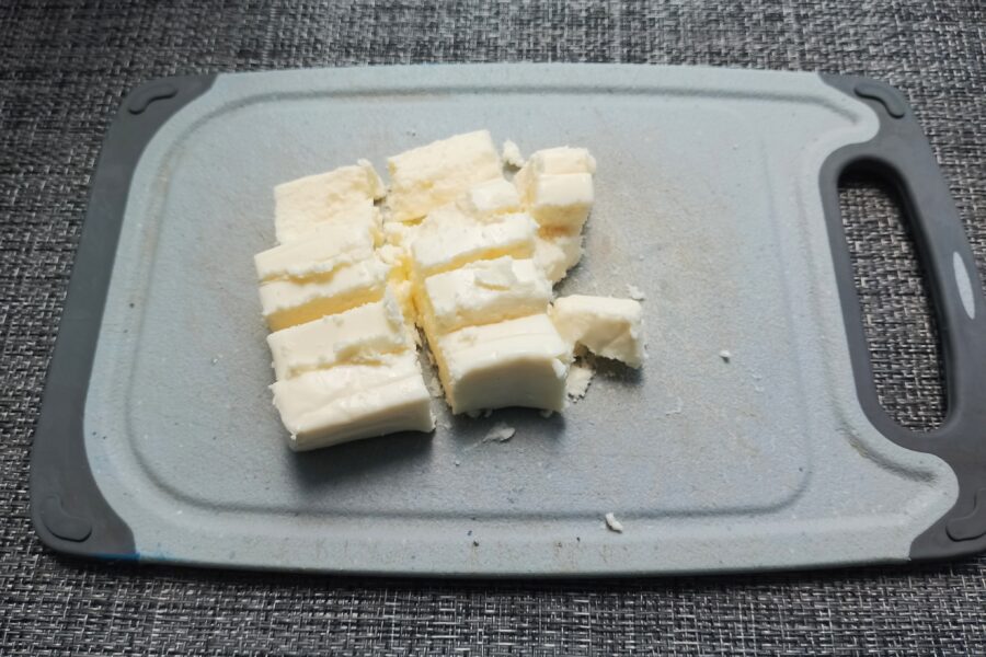- Tăiați cașcavalul topit în batoane mici, care vor fi umplutura pentru chiftele.