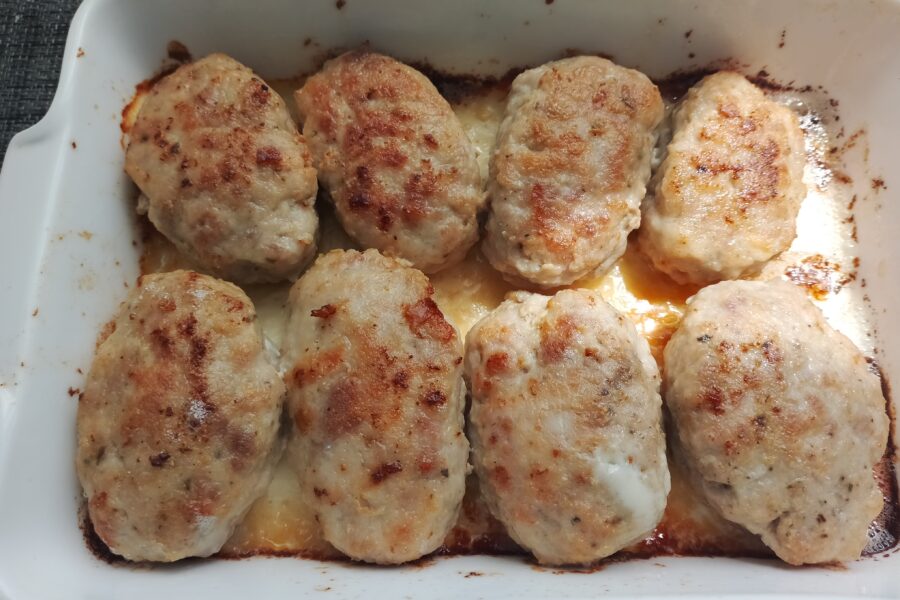 - Puneți chiftelele într-o formă de copt, acoperiți-le cu folie și gătiți-le timp de 50 de minute la 180°C în cuptor.