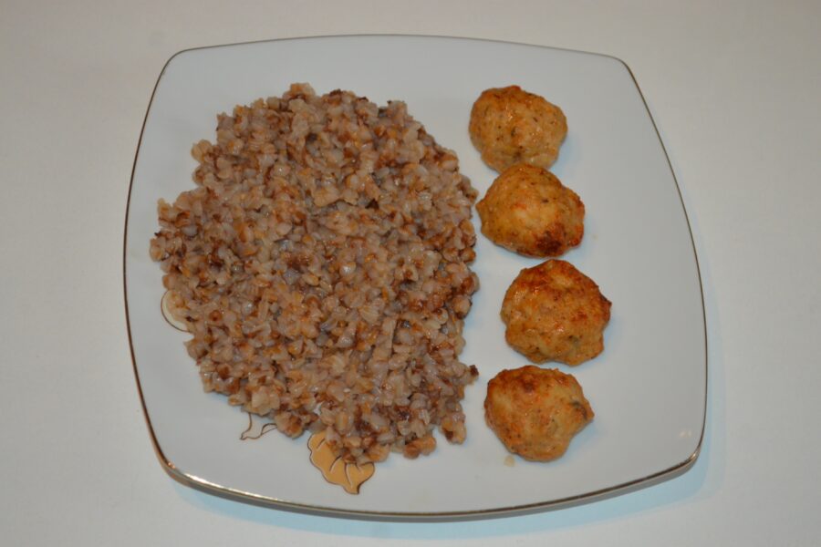 - Serviti chiftelutele cu orice garnitura doriti, eu am ales hrisca.