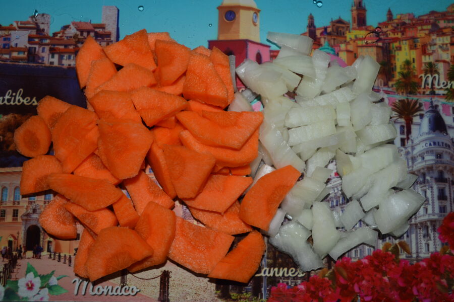 - Taiati una din cepe si morcovul.