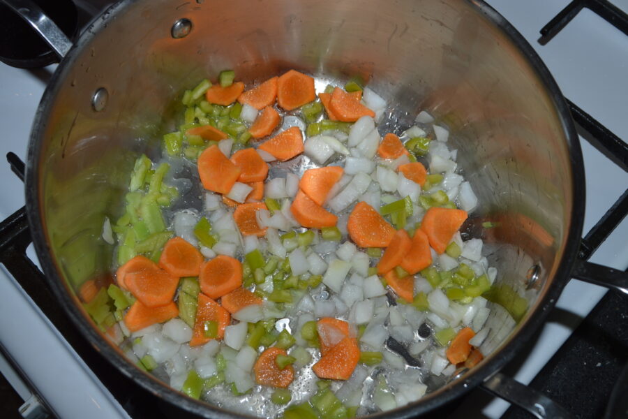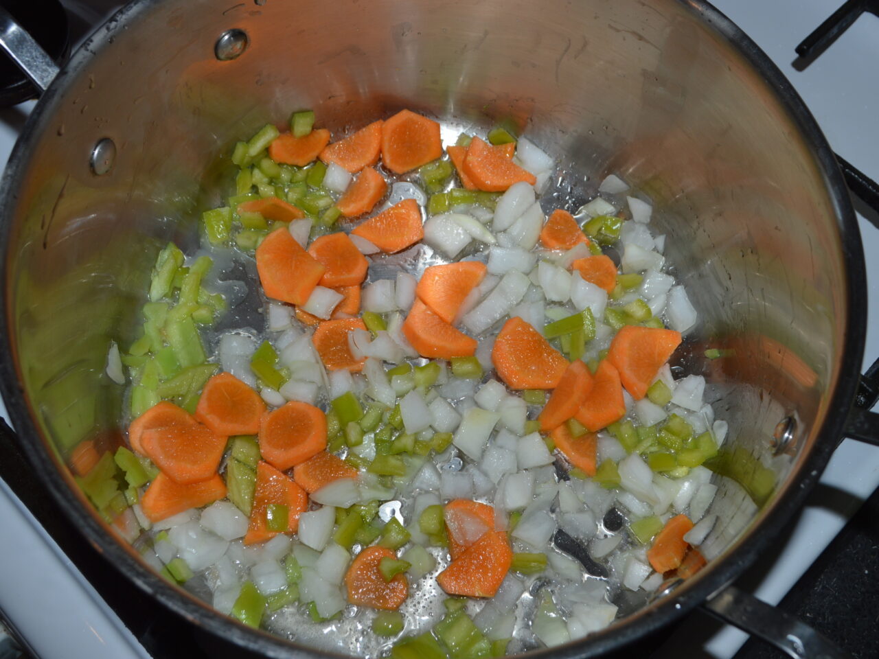 - Intr-o cratita mare (eu am folosit una de 5 litri) turnati putin ulei, apoi puneti legumele si caliti-le cateva minute, la foc mic.