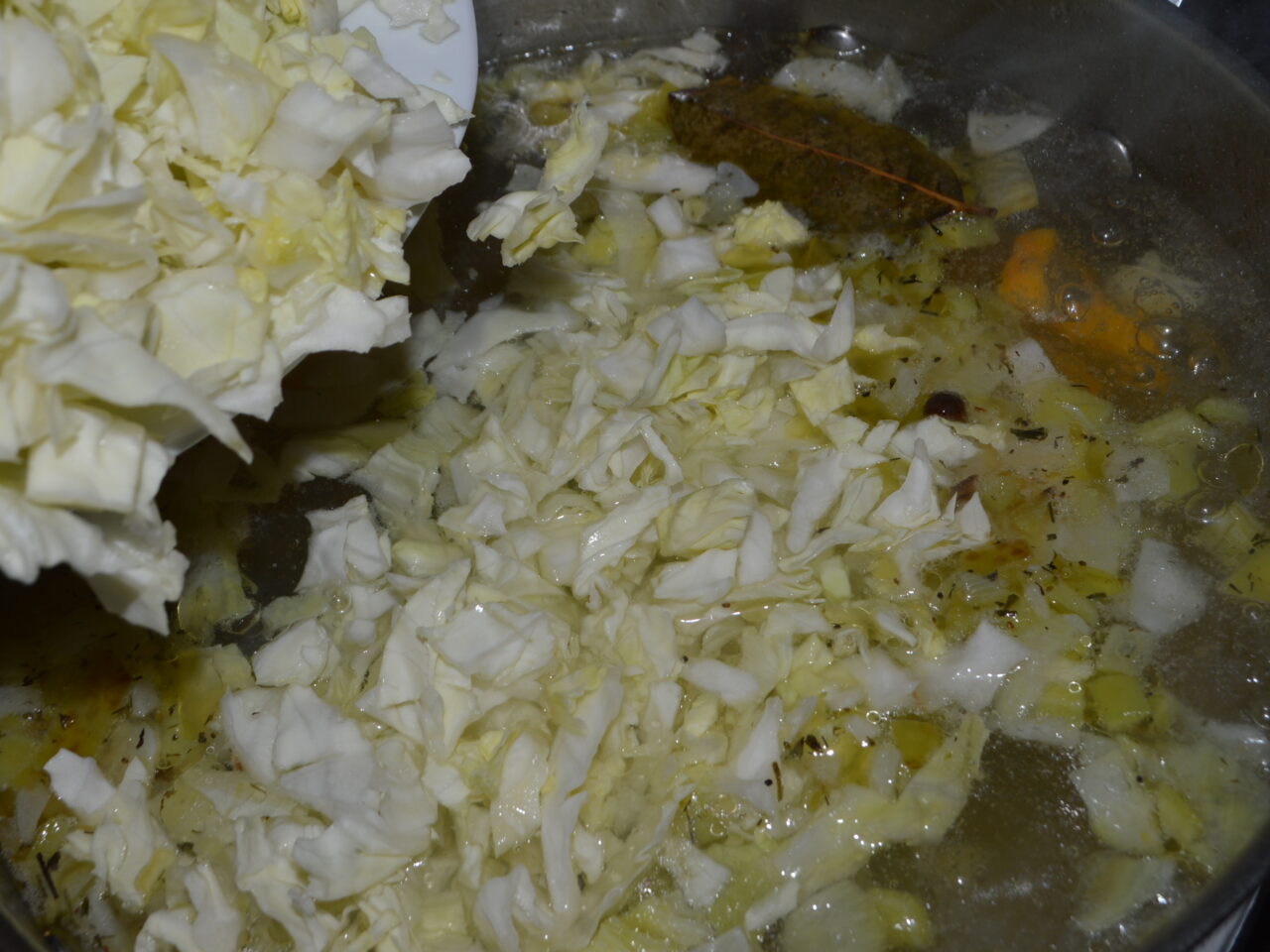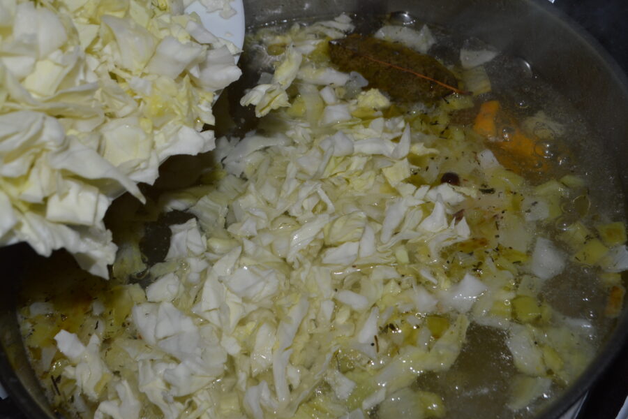 - Adaugati varza tocata in ciorba, si fierbeti inca timp de 15 minute.