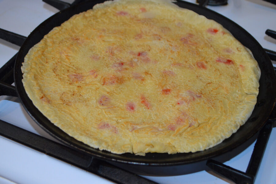 - Puneti in tigaie cite un polonic din compozitia pregatita si coaceti clatita.