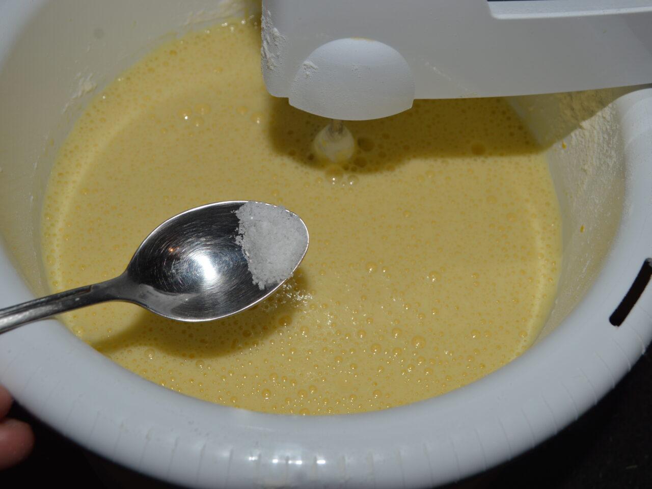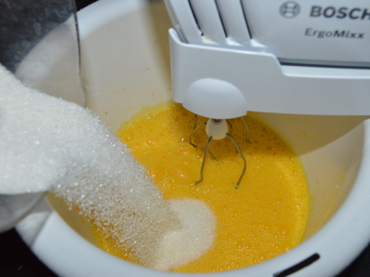 - Adaugati zaharul, si bateti in continuare pana se topeste complet zaharul.