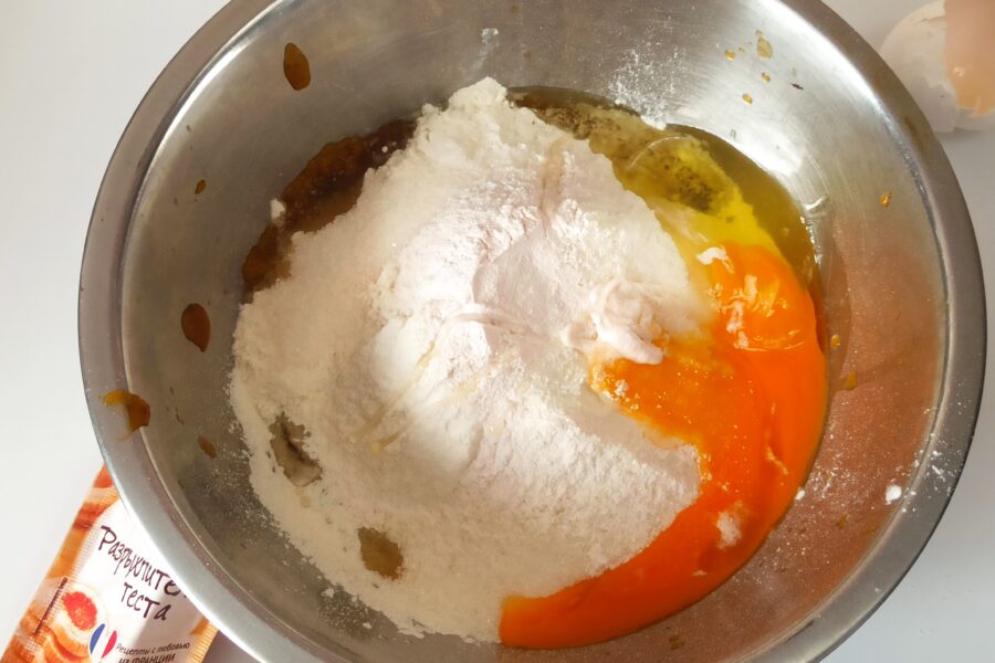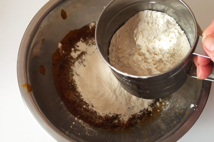 - Adaugati praful de copt, zaharul, sarea, apoi oul.