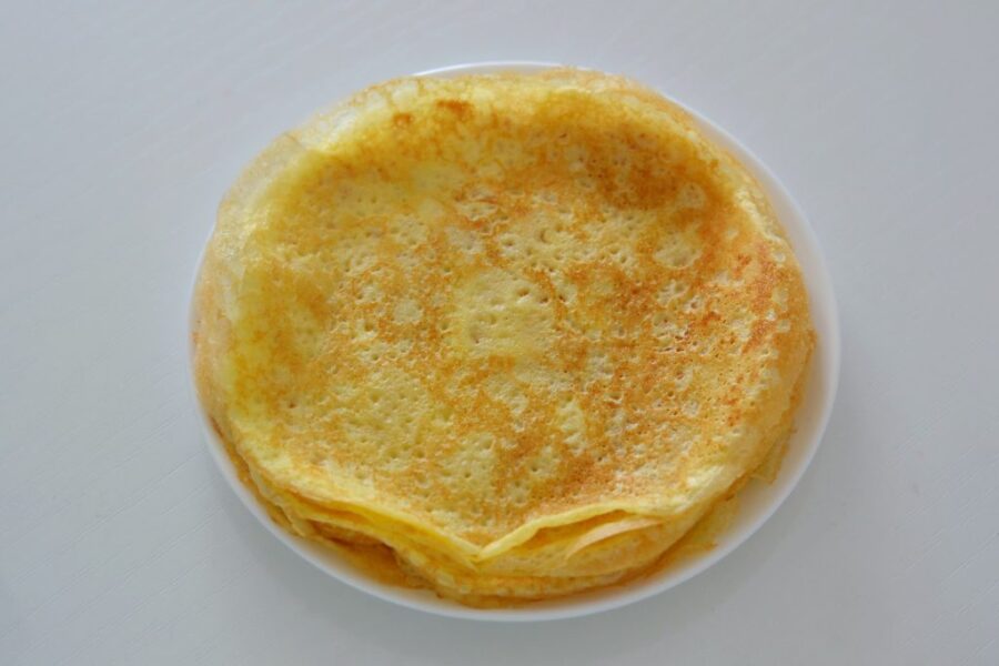- Prăjiți toate clătitele în acest fel, stivuiți-le și acoperiți-le cu un prosop.