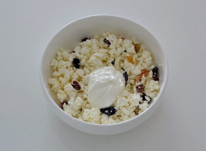 - Pentru umplutura de brânză de vaci: