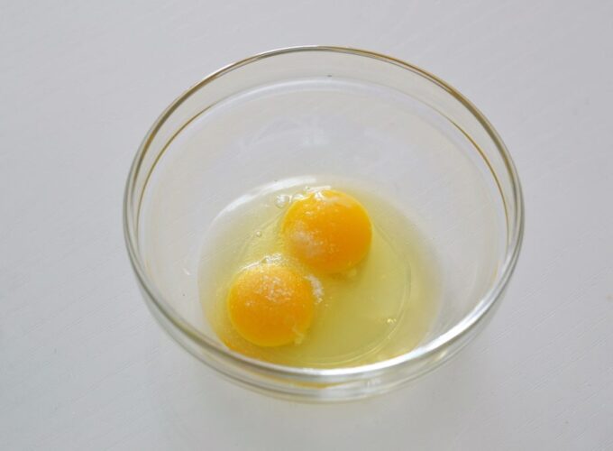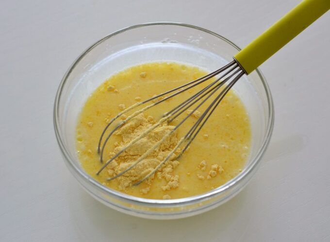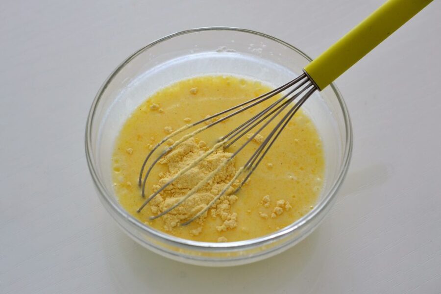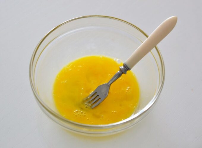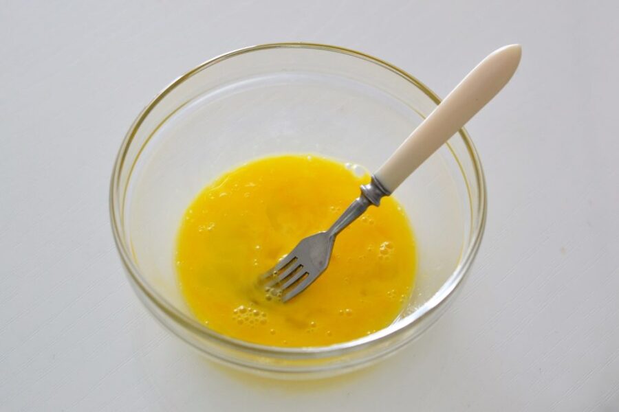 - Bateți bine ouăle cu o furculiță sau cu un tel.