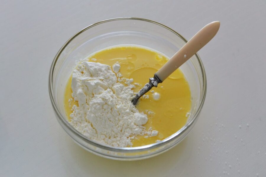 - Se toarnă amidonul de porumb și se amestecă cu un tel până se dizolvă.