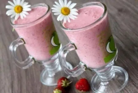 - Puneți banana și căpșunile într-un bol de blender, adăugați chefir și miere.