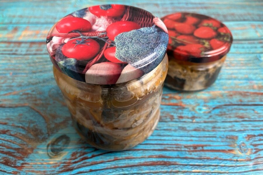 Din cantitatea de ingrediente indicate de pește conservat, obțineți 2 borcane: un borcan este de 400 ml, celălalt este de 250 ml.