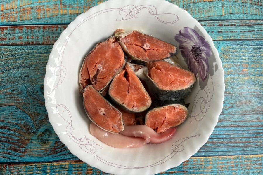 - Puneți bucățile de pește într-un castron adânc.