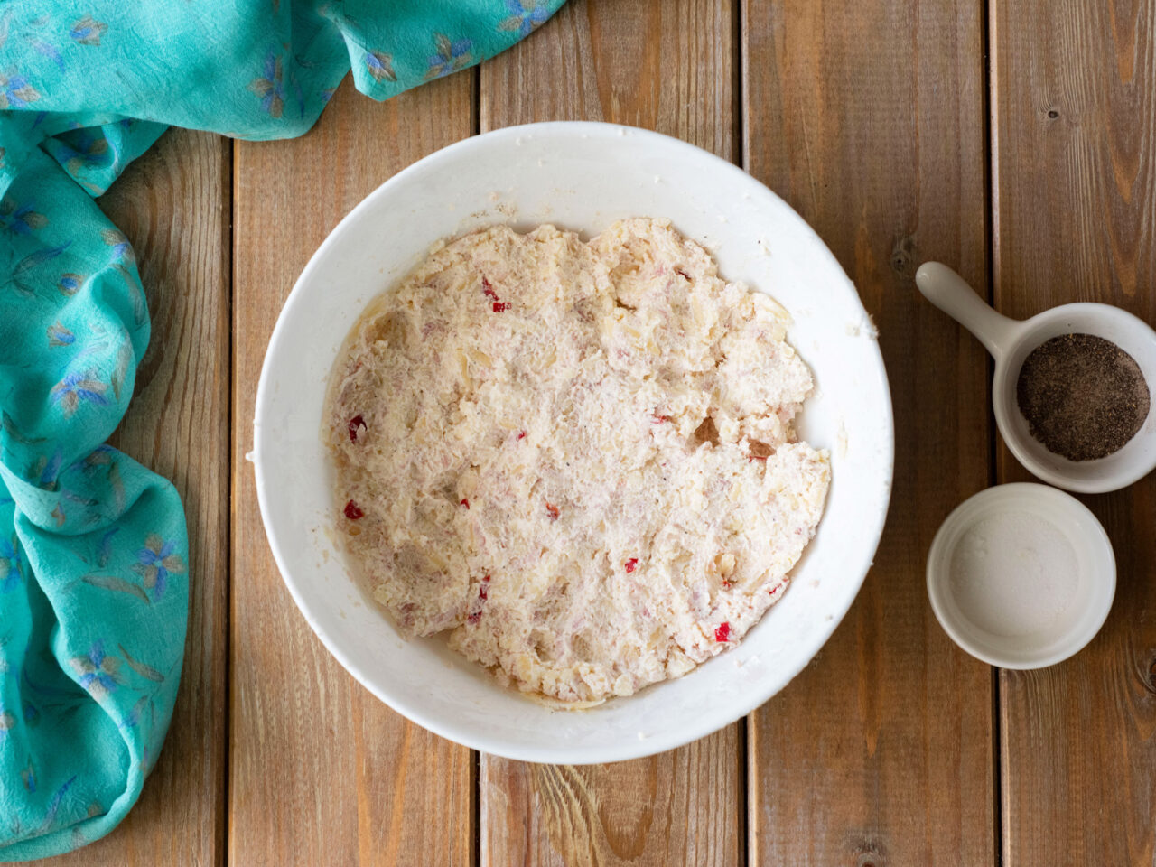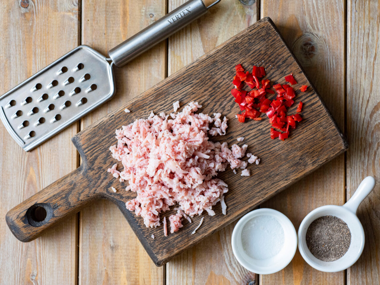 - Tăiați șunca și ardeiul iute jalapeno. Puteți tăia șunca în cuburi mici cu un cuțit ascuțit sau o puteți rade cu o răzătoare grosieră, așa cum am făcut eu. Curățați ardeii de semințe, îndepărtați tulpina și tăiați-i în cuburi mici.