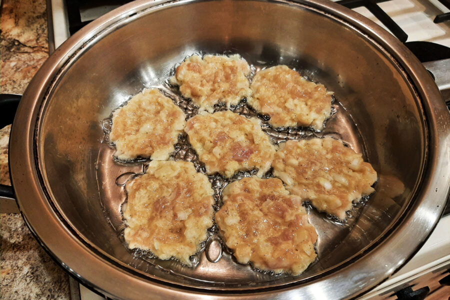 - Încingeți o tigaie, turnați legume rafinate sau ghee în ea. Puneti carnea tocată într-o tigaie încălzită cu o lingură, formând mici cotlete plate.
