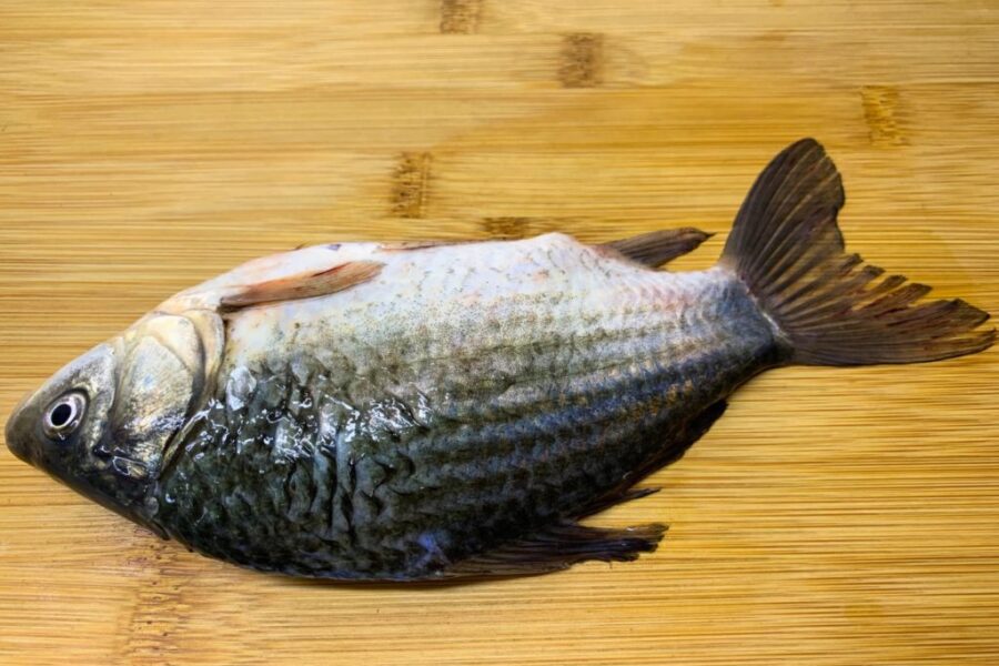 - Îndepărtați solzii crapului, tăiați burta și îndepărtați toate măruntaiele împreună cu pelicula neagră. Deoarece lăsăm capul, este necesar să tăiem branhiile. Clătiți bine peștele cu apă curentă.
