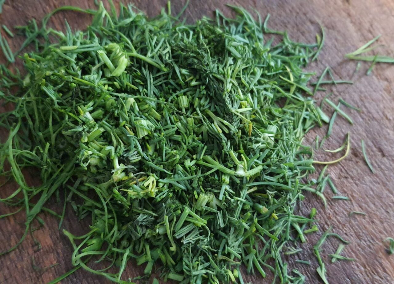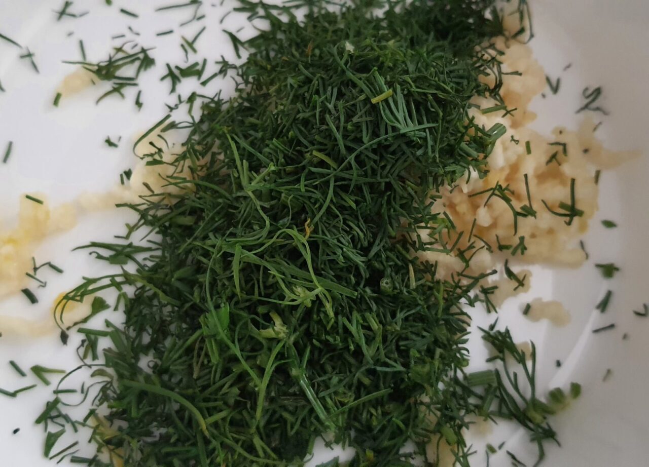 - Adăugați mărar la usturoi, amestecați.